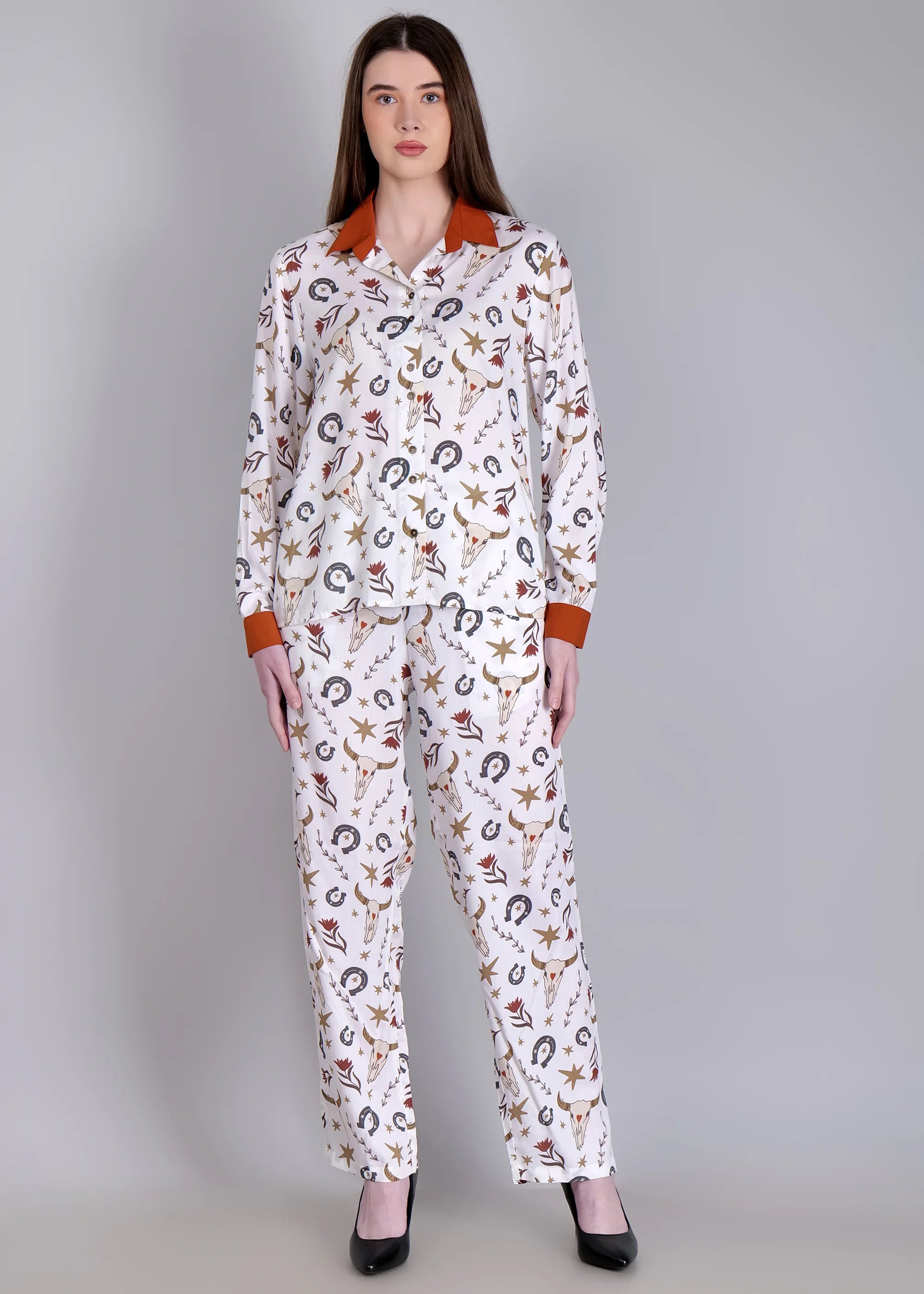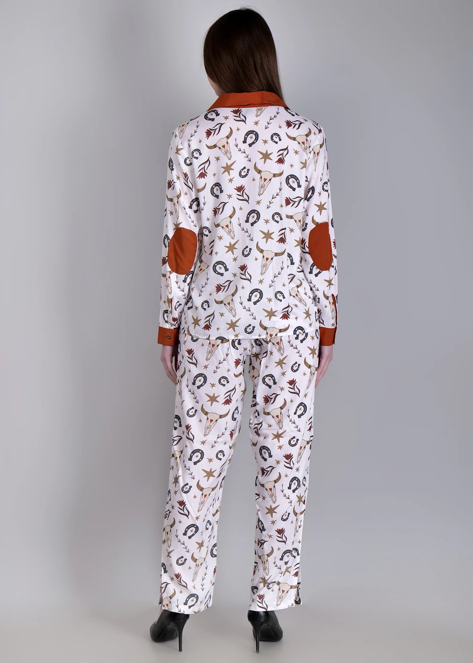 WOMEN'S BULL HORN MIX PRINT SHIRT WITH TROUSER RAYON CO-ORD SET