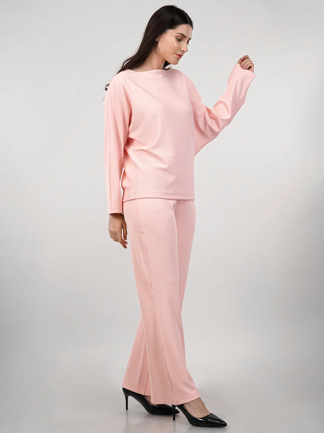 WOMEN'S PINK RIB KNIT POLYESTER CO-ORDS SET