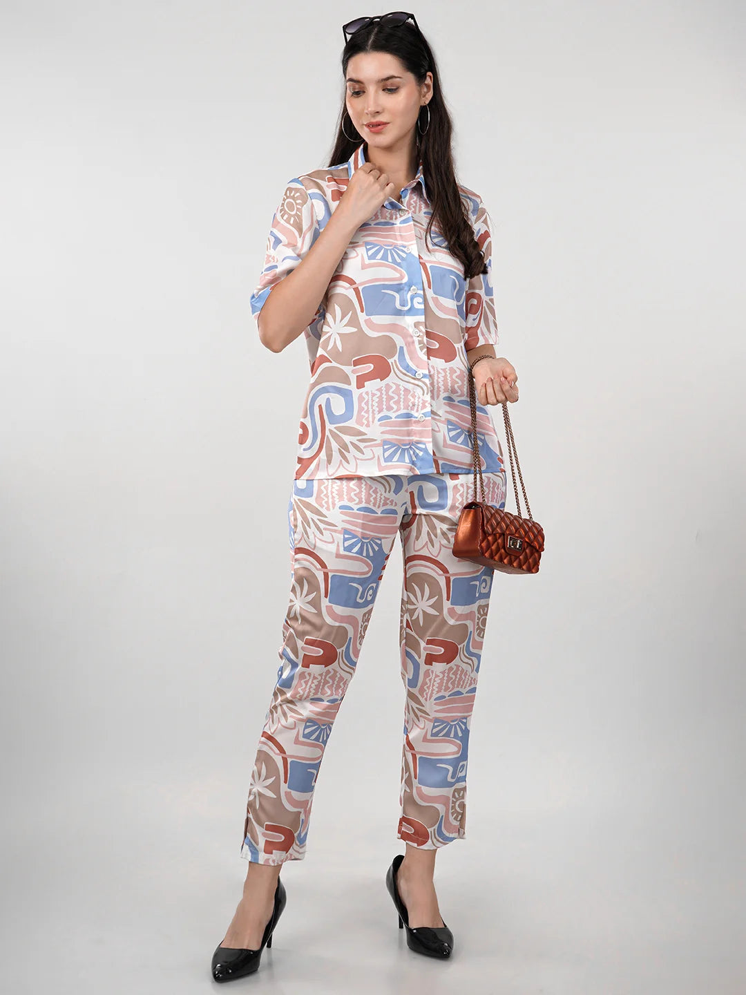 WOMEN'S SWISS SATIN PRINTED SHIRT WITH TROUSERS CO-ORDS SET