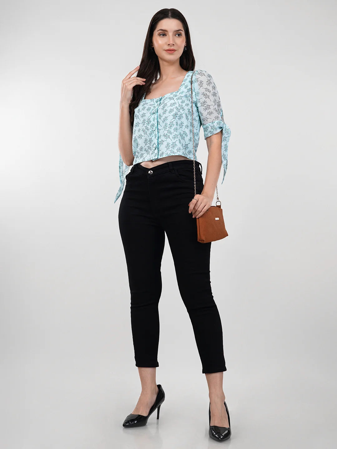WOMEN'S GEORGETTE BUSHES PRINTED CROP TOP