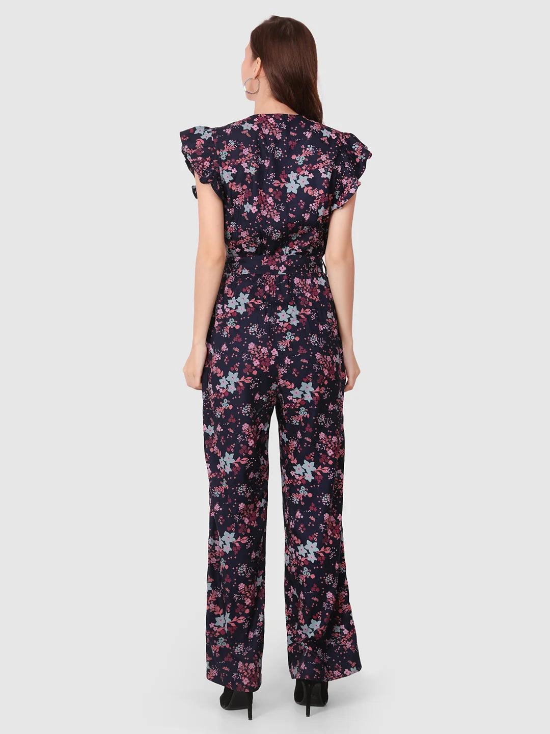 WOMEN'S NAVY BLUE FLORAL PRINT RAYON JUMJPSUIT